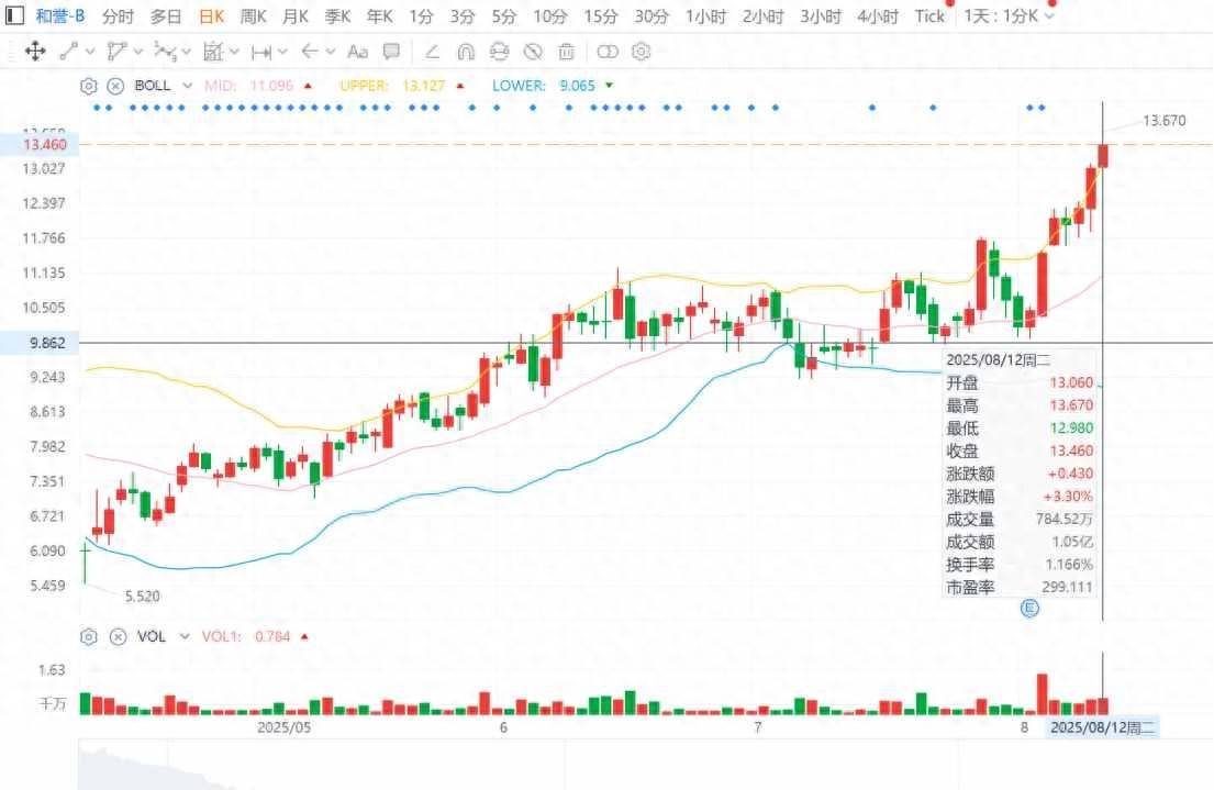 今年以来,在多重利好催化下,和誉-B(02256)股价一路走高。8月11日,公司股价成功跃过IPO发行价12.46港元,最终收涨5.93%,次日,公司盘中股价触及13.67港元在配资炒股,继续刷新上市新高,而公司股价年初至今涨幅也即将来到200%。
